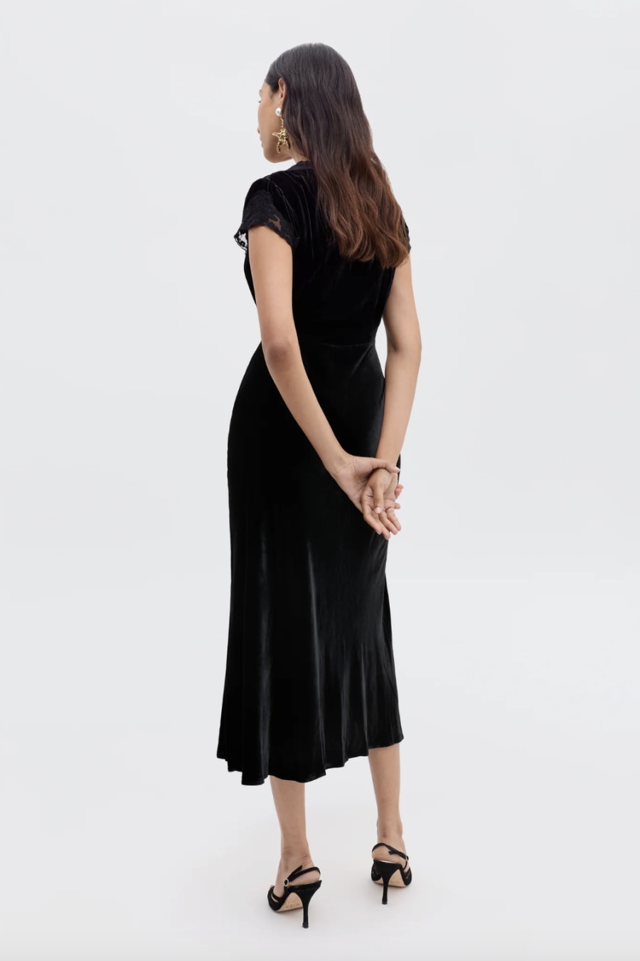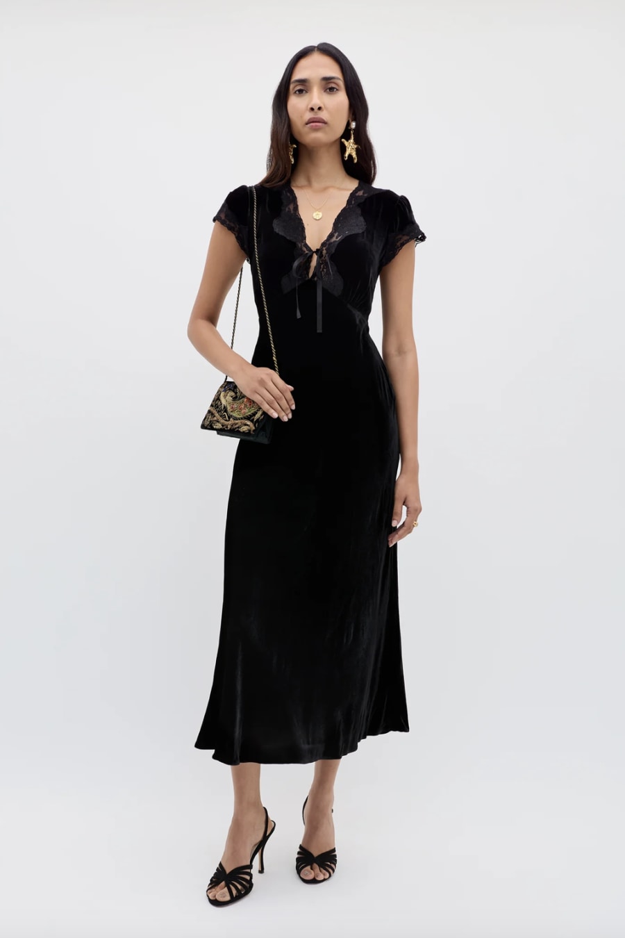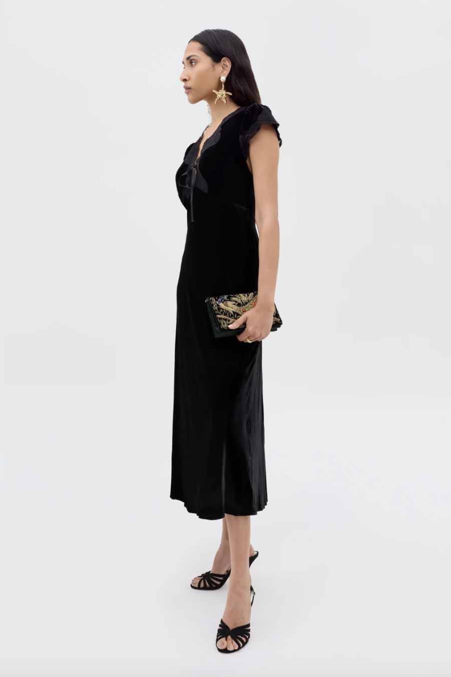 Amari is based on our bestselling Clarice dress, but the black velvet gives an elevated feel, perfect for occasions or evenings. It's cut in our signature bias shape, with underbust seams and a tie front so you can adjust the V-neck. You may also like Ilene.