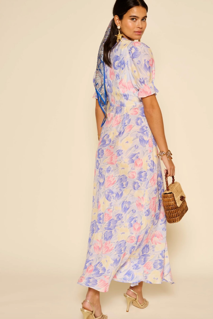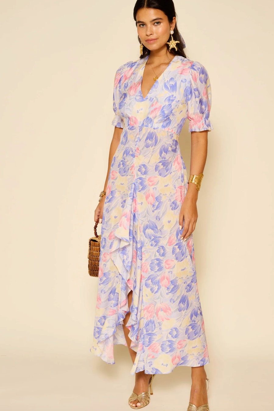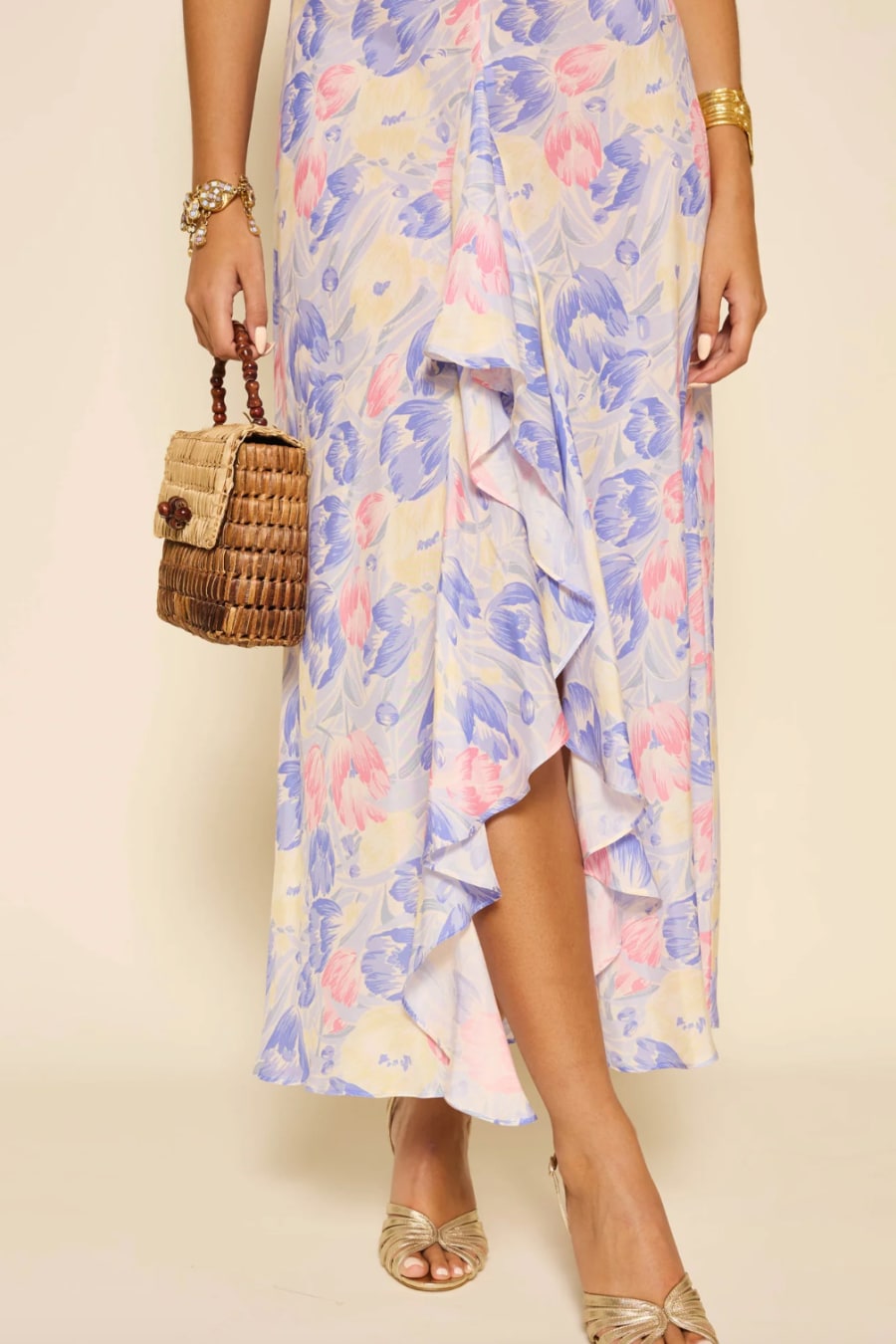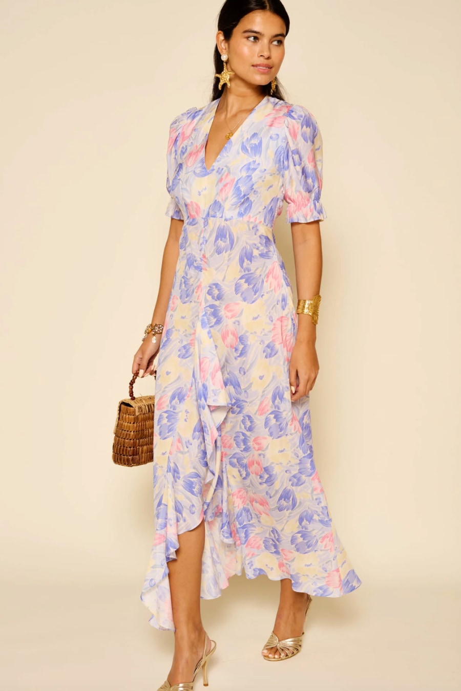 We've updated Ariel in our new, vintage-inspired Tulip Fields print and improved how the skirt drapes. The delicate blooms complement the delicate fabric and floaty, ruffled hem. It's the perfect dress for special occasions.