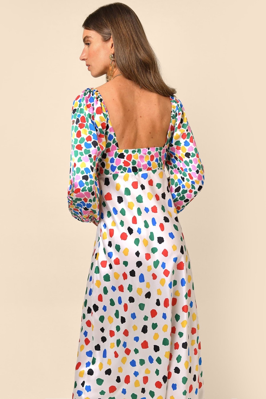 • Bias-cut skirt, contours to the body