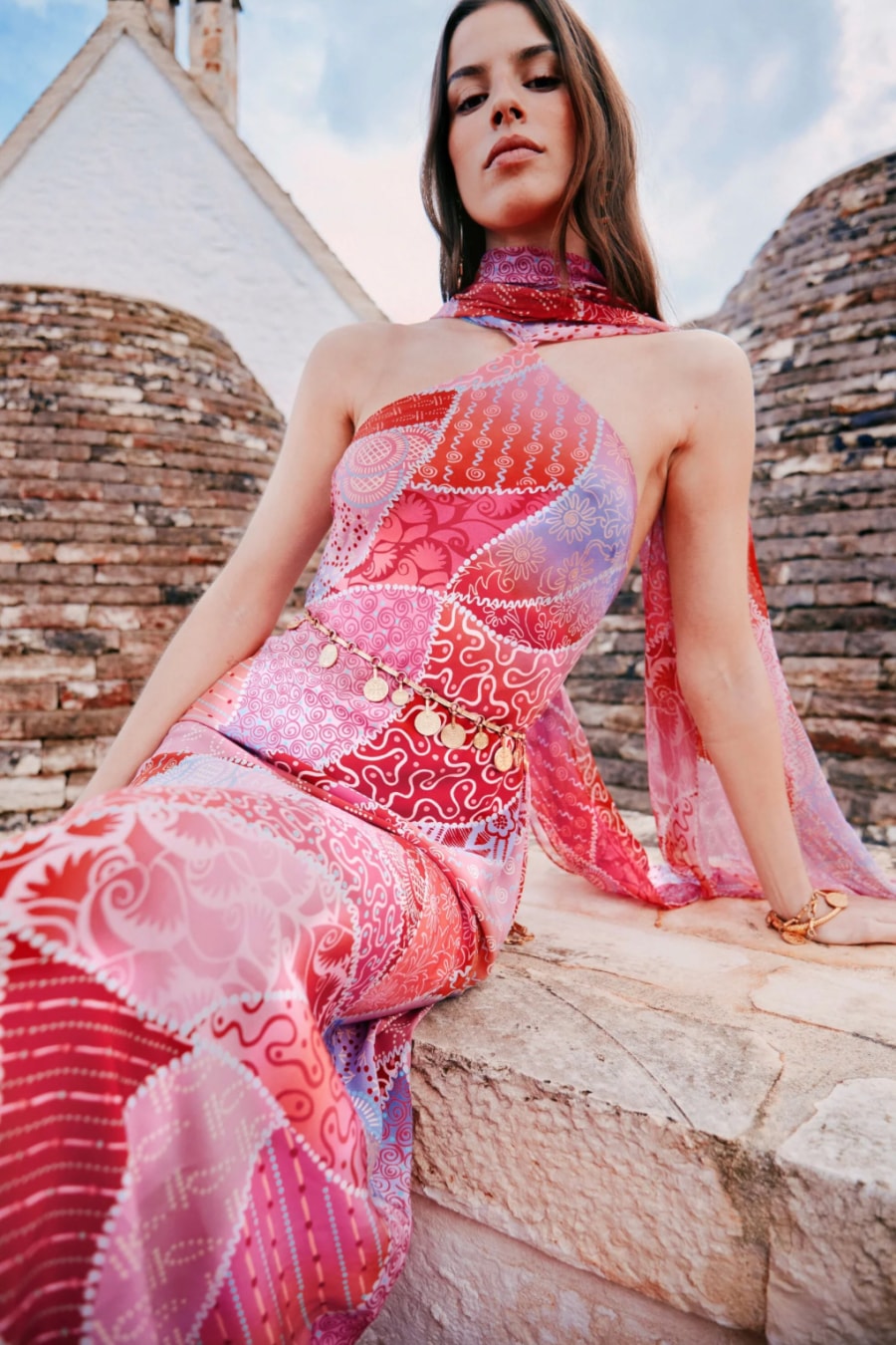 Hayley Silk Midi Dress - Ibiza sunset