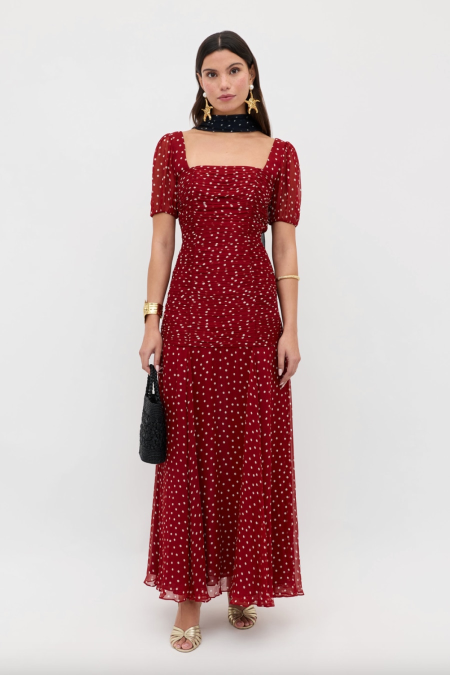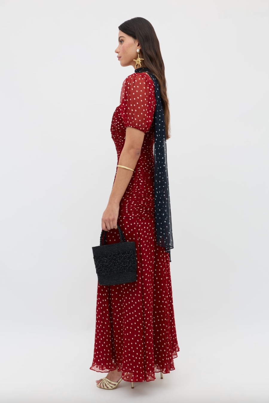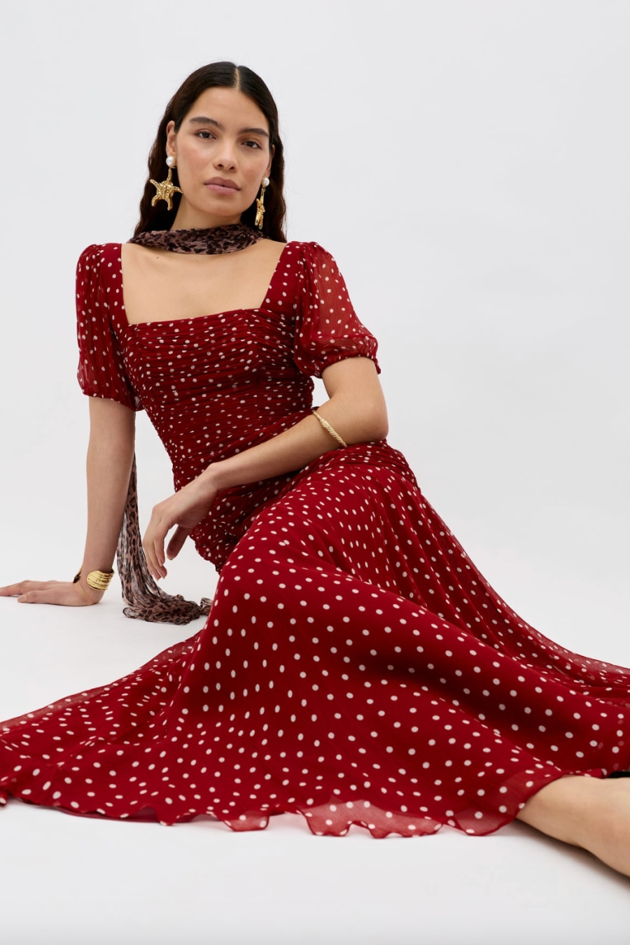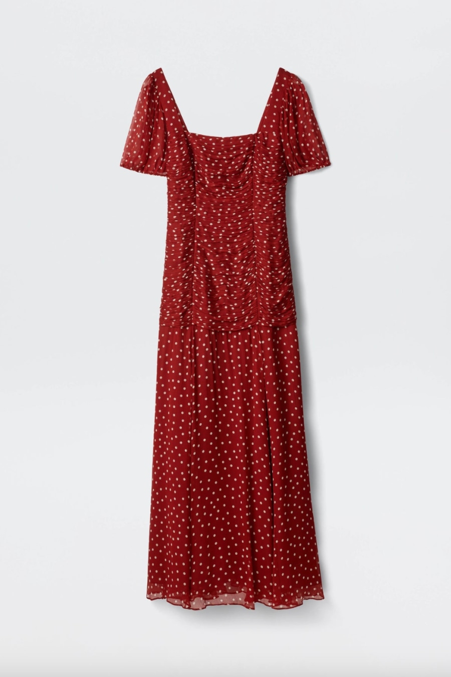 A timeless style made new, our Leyane dress takes classic vintage details, like its drop waist and playful puffed sleeves, and gives them a modern twist. Crafted from a delicate crinkled chiffon, it has an elegant drape and feels beautifully light to wear. Perfect for twirling on the dancefloor and festive soirées.