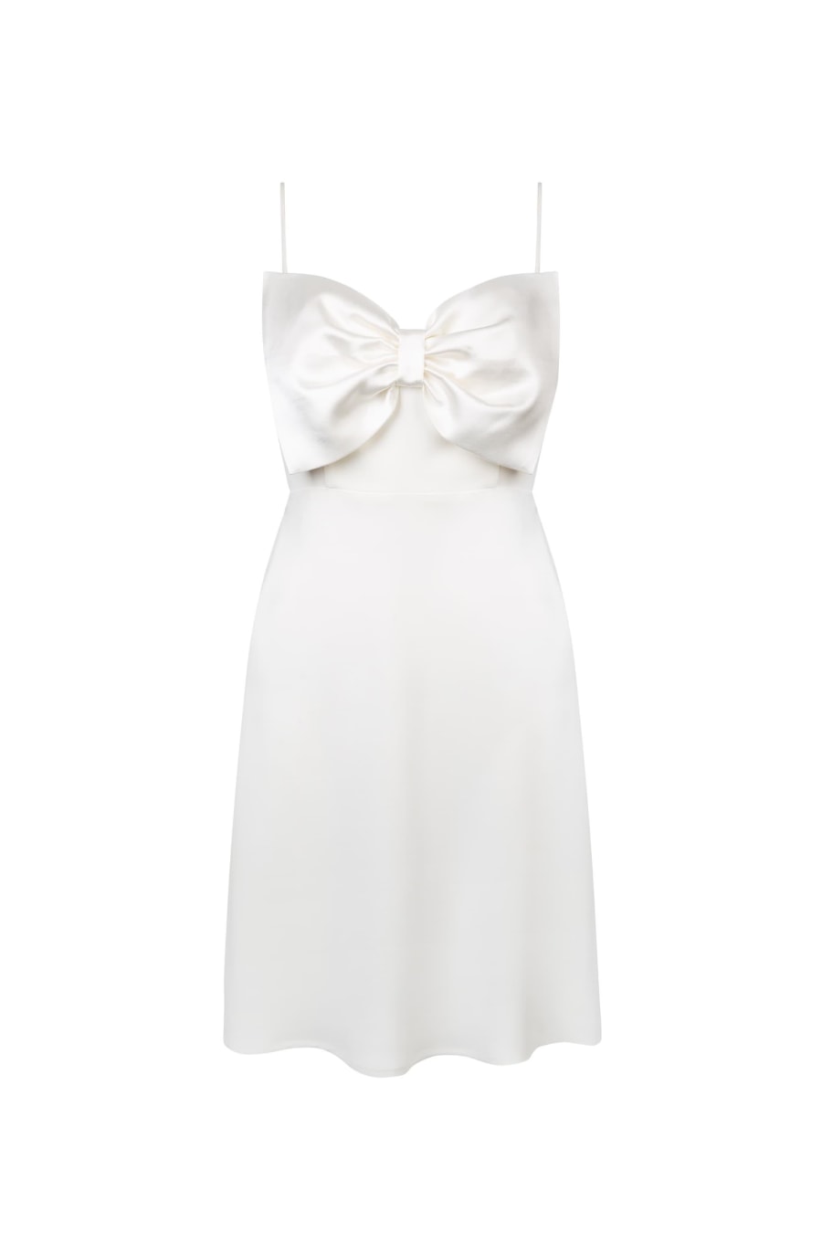 • Oversized satin-back crepe bow at bust